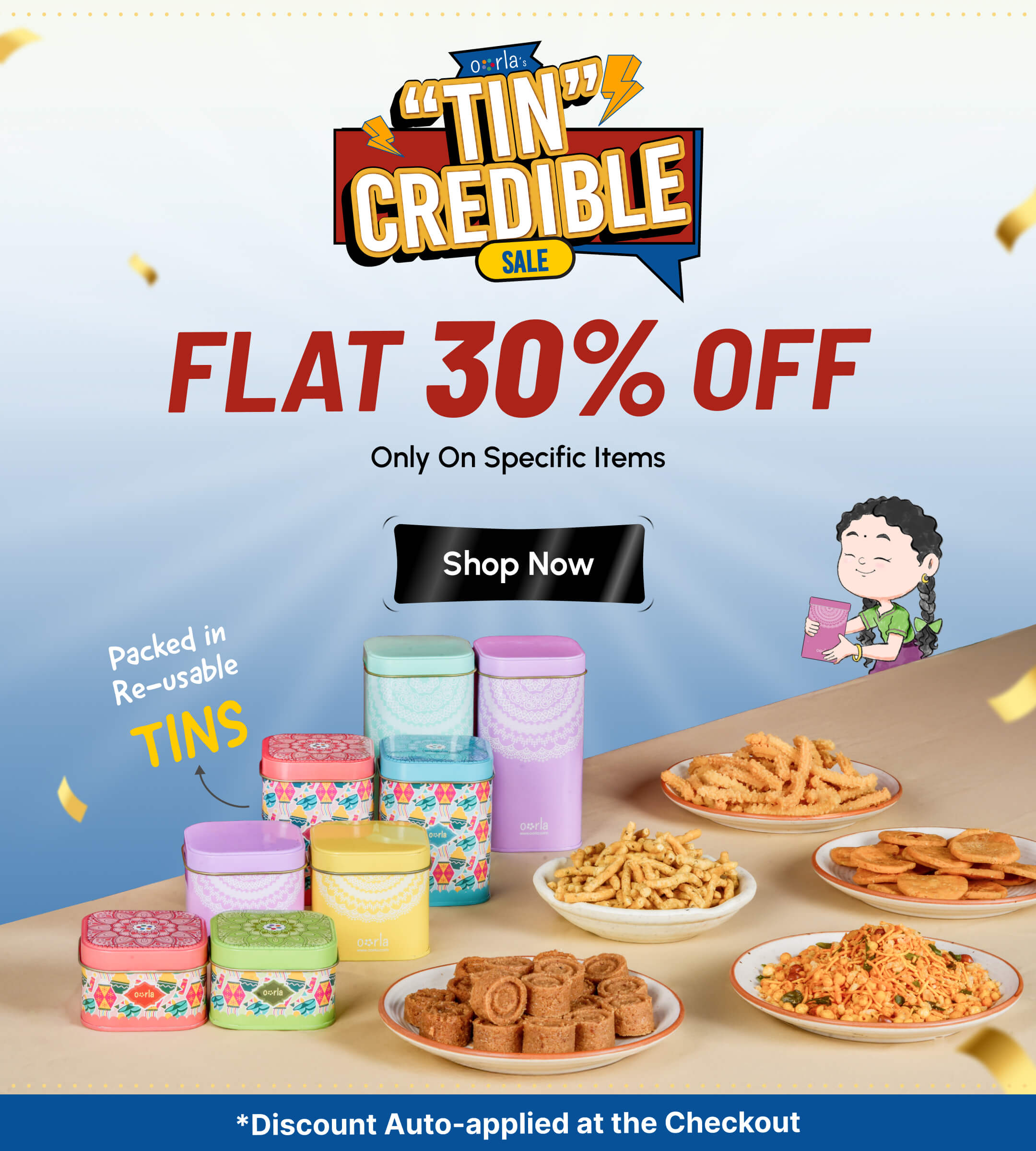 Your favourite South Indian Sweets & Snacks. Packed in colourful, reusable tins that you’ll love to keep.