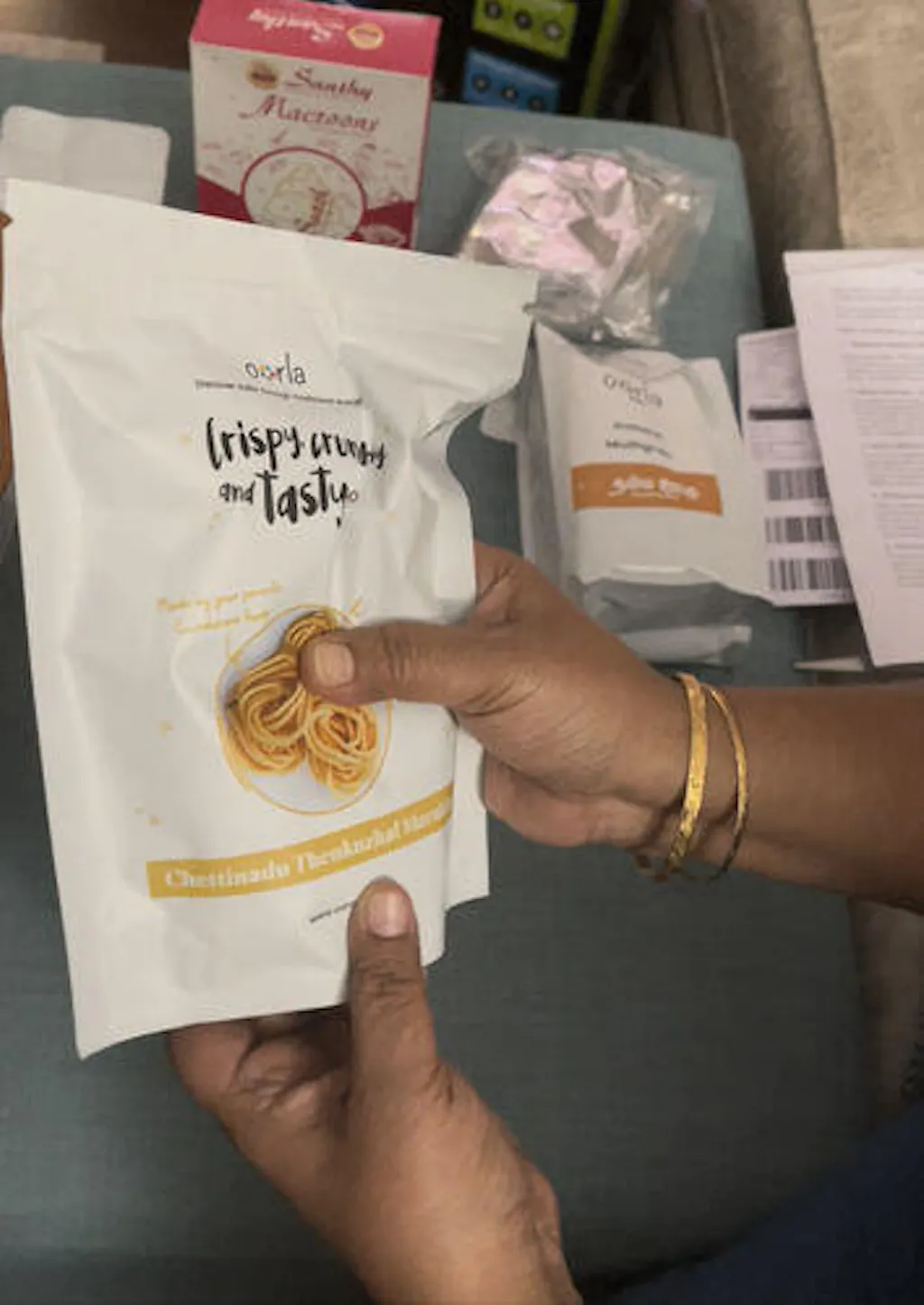 It’s made using the secret age-old recipe of Karaikudi Soundaram Aachi, with fresh oil and a perfect blend of raw rice flour, urad dal, and salt for that signature crunchy texture.