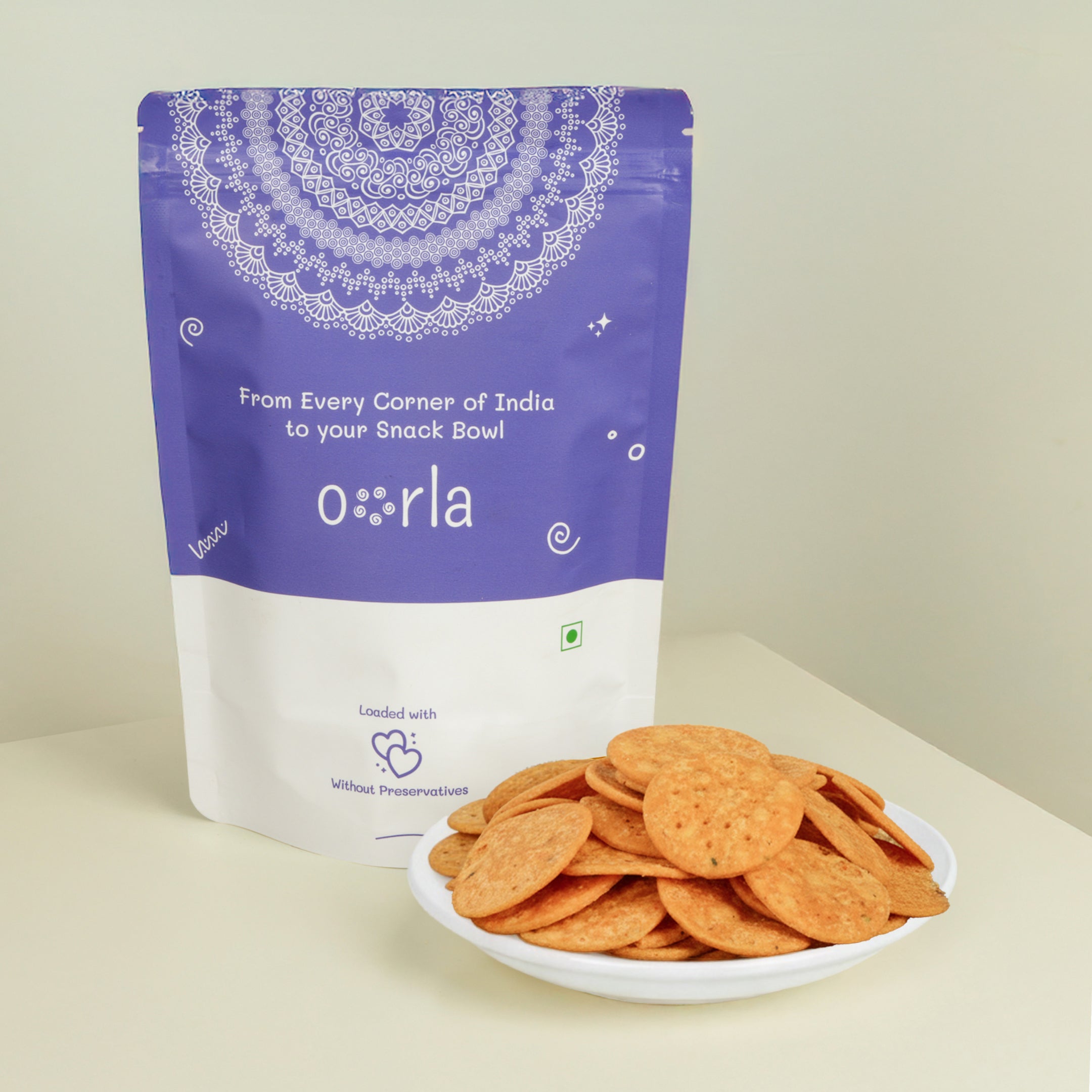 Savour the authentic crunch of Oorla’s Rajapalayam Thattai, a classic Tamil Nadu snack made with rice flour, lentils, and spices. Thin, crispy, and full of flavour, this traditional treat is a must-have for those who love South Indian savouries.